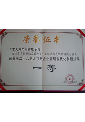 天海工業(yè)一直秉承“誠信、敬業(yè)、學(xué)習(xí)、創(chuàng)新,志在一流”的企業(yè)精神,以安全可靠的產(chǎn)品和優(yōu)質(zhì)的服務(wù),樹立了良好的企業(yè)形象,先后榮獲中國百強企業(yè)、北京市十佳外商投資企業(yè)、北京市高新技術(shù)企業(yè),中國金屬壓力容器制造行業(yè)排頭兵企業(yè)和全國“五一”勞動獎狀、“北京市專精特新小巨人企業(yè)”、“國家級專精特新小巨人企業(yè)”等榮譽稱號。