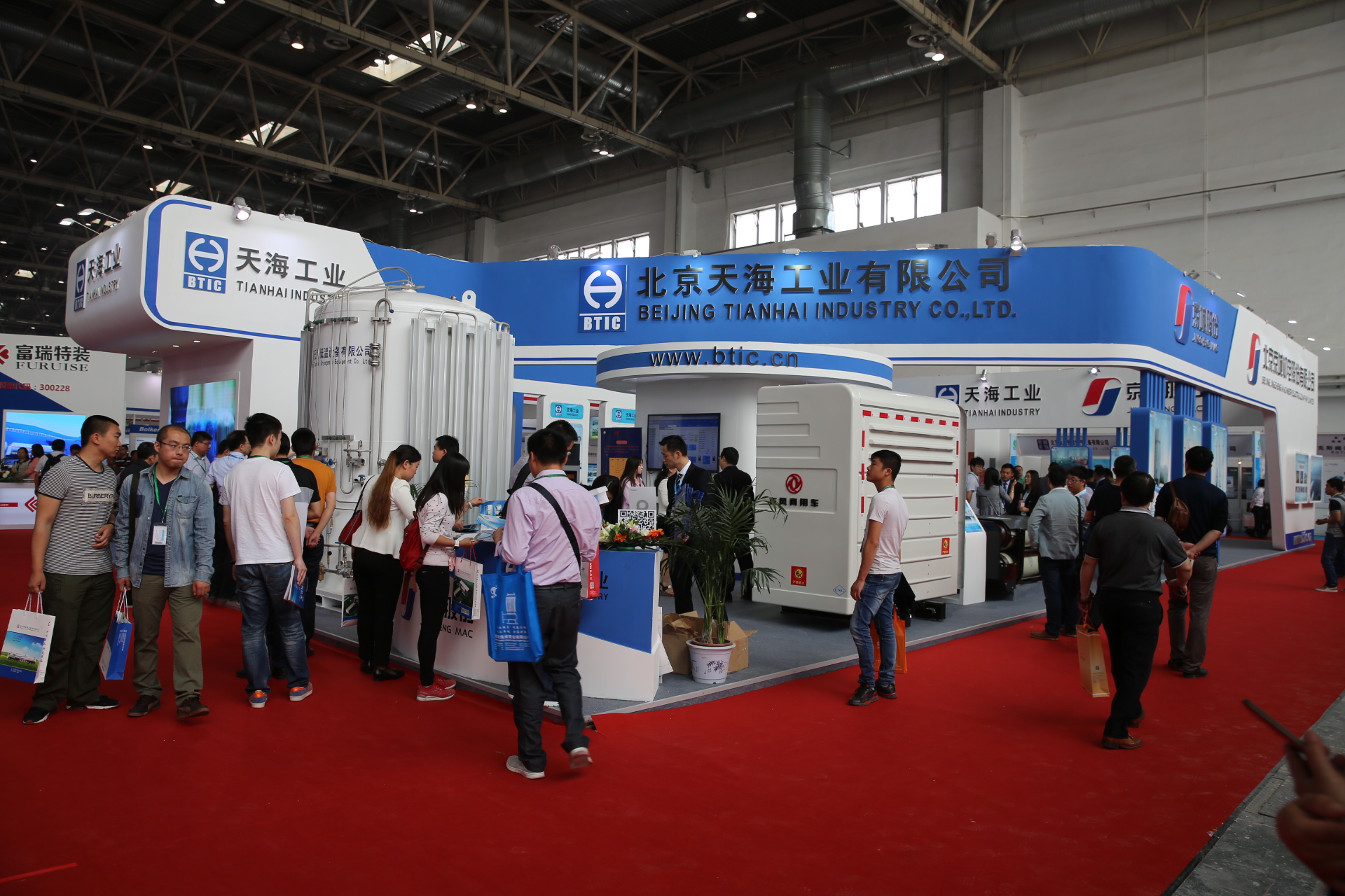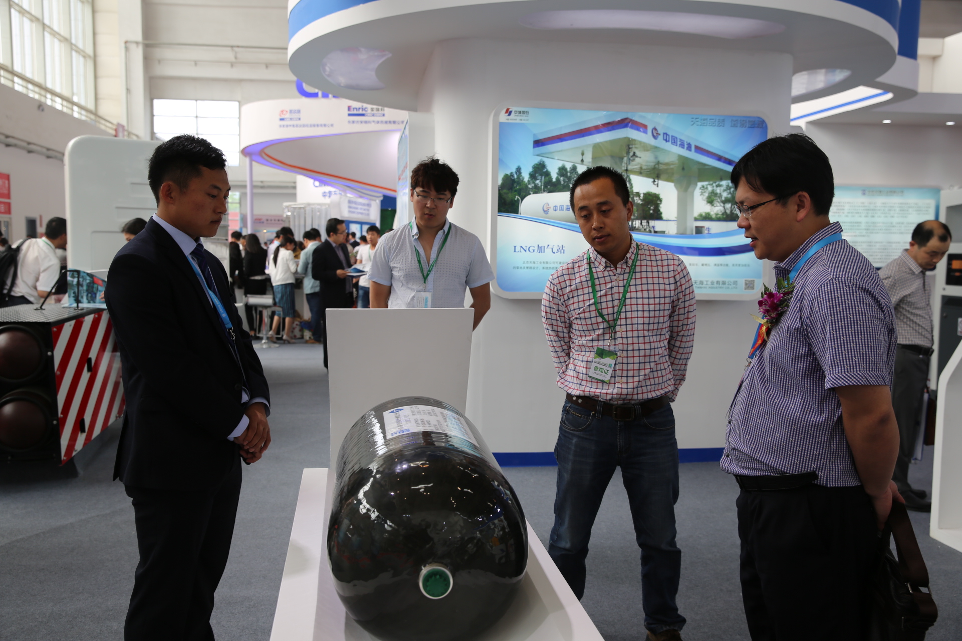 天海工業(yè)秉承高效、環(huán)保、節(jié)能的理念,致力于推動(dòng)清潔能源燃料系統(tǒng)的發(fā)展,提供天然氣儲(chǔ)運(yùn)領(lǐng)域全套解決方案。此次展會(huì),不僅展出了公司全新研制的車用壓縮天然氣鋁內(nèi)膽碳纖維全纏繞復(fù)合氣瓶(CNG-3型瓶)、車用壓縮氫氣鋁內(nèi)膽碳纖維全纏繞復(fù)合氣瓶(CNG-3型瓶),還有公司最新研發(fā)的具有國(guó)內(nèi)先進(jìn)技術(shù)的LPP型車用LNG氣瓶以及大直徑車用LNG氣瓶,更有應(yīng)用于定檢站維修站應(yīng)用的真空降級(jí)維修設(shè)備、小型汽化站系統(tǒng)以及加氣站物聯(lián)網(wǎng)系統(tǒng)等多種全新產(chǎn)品。此外通過(guò)循環(huán)播放公司宣傳片及精心設(shè)計(jì)的30多塊展板全面展示了公司在天然氣儲(chǔ)運(yùn)領(lǐng)域所能提供的系列產(chǎn)品及服務(wù)。