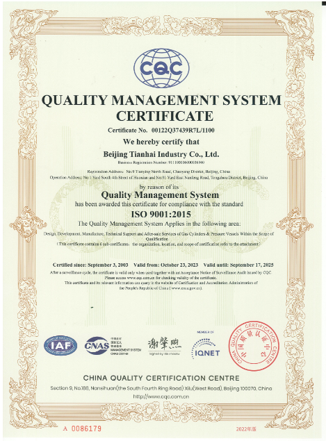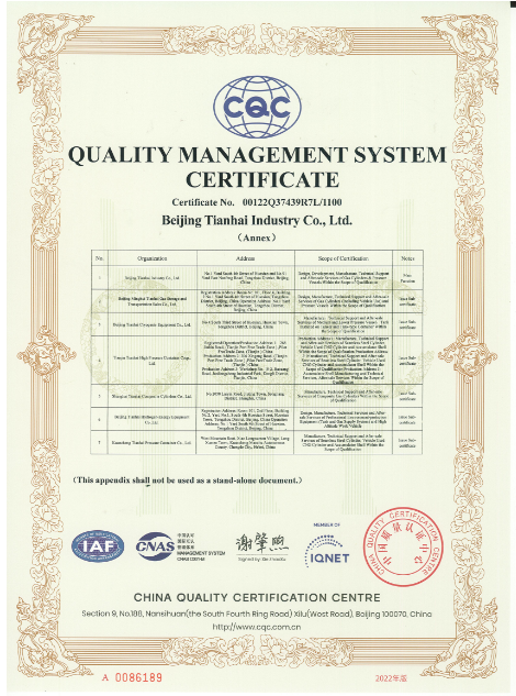 2010年9月,天海工業(yè)為保證品牌質(zhì)量,保證產(chǎn)品一致性,建立了集團(tuán)一體化ISO9001質(zhì)量管理體系,通過中國質(zhì)量認(rèn)證中心的集團(tuán)式認(rèn)證并取得證書。
